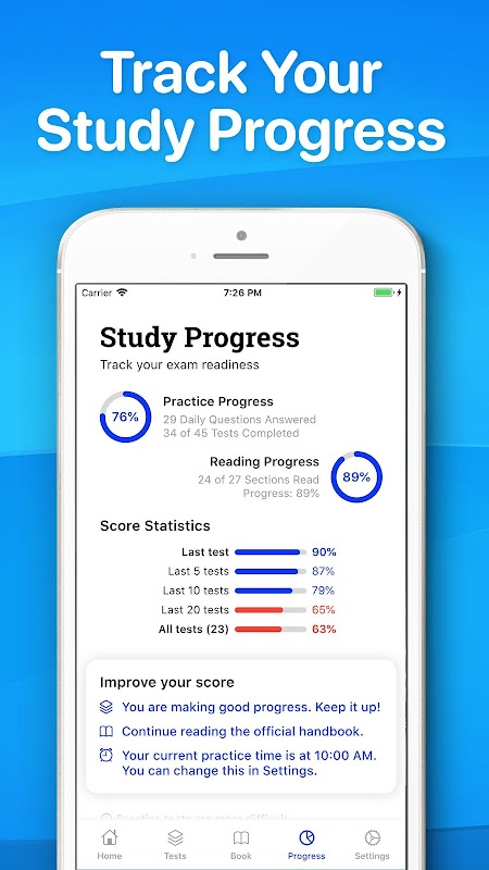 - 您可以跟踪您正確、錯誤地做的問題的數量,並根據官方及格分數獲得最終通過或不及格分數