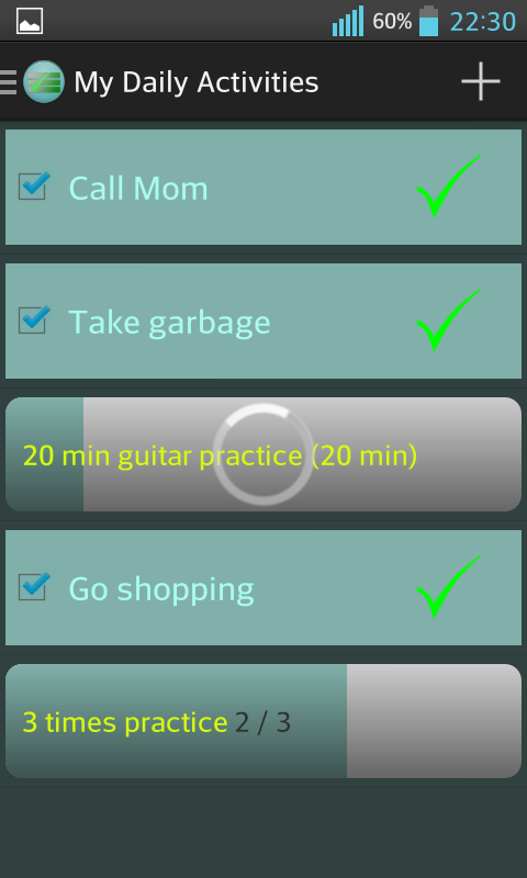 With this app you can have three kinds of tasks: simple To do tasks, Time tasks and count tasks.