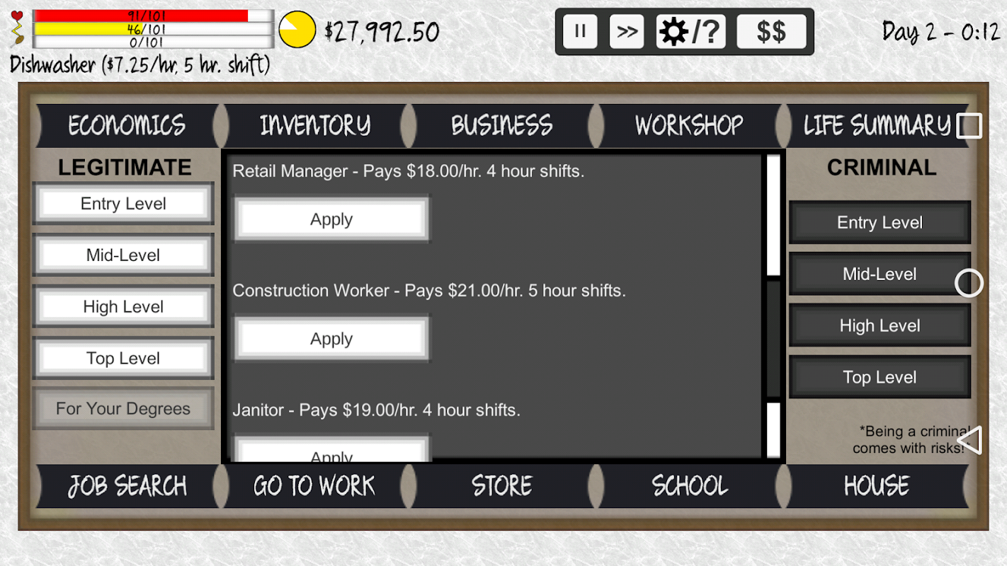 An aspect that's a bit different from real life is the ability to choose when you die. When you do this, you lose all of your progress. But don't fear!
