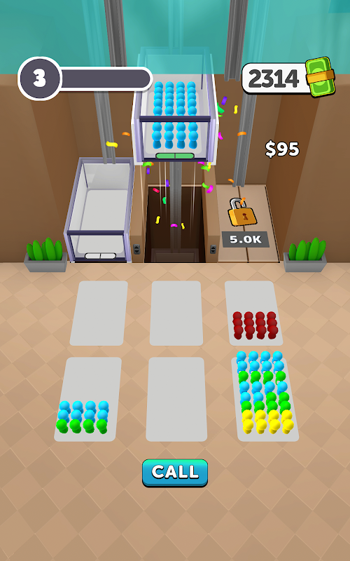 跳入「電梯分類」的繁華世界,電梯成為充滿活力的益智挑戰的中心舞台!您的任務是管理電梯內熱切的人群和在電梯外等待的人群,您的目標是策略性地安排他們的位置以匹配顏色。電梯容納的乘客越多,您的分數就越高。使用「呼叫」按鈕召喚無盡的多彩乘客,增強您的遊戲體驗。