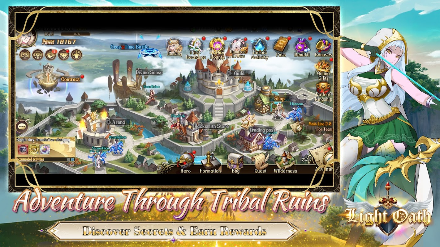 《光明誓約》是一款部落奇幻角色扮演遊戲,背景設定在一個充滿古代遺跡和傳奇英雄的異國世界。探索神祕的土地,招募並訓練來自不同部落的英雄,喚醒強大的聖物來強化你的隊伍。帶領你的部落參與戰略戰鬥,塑造他們的命運。