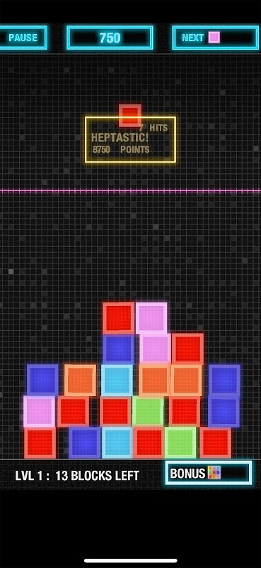 目標是讓 3 個或更多相同顏色的方塊相互接觸。透過點擊並按住螢幕來控制並減慢下落的方塊。同時消失的方塊數量越多,分數就越高!驚人的獎勵塊也可以幫助你並進行連擊。