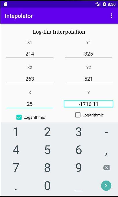 輕鬆計算迭代(線性和對數)。使用此應用程序,您可以通過以下組合執行線性和對數插值: