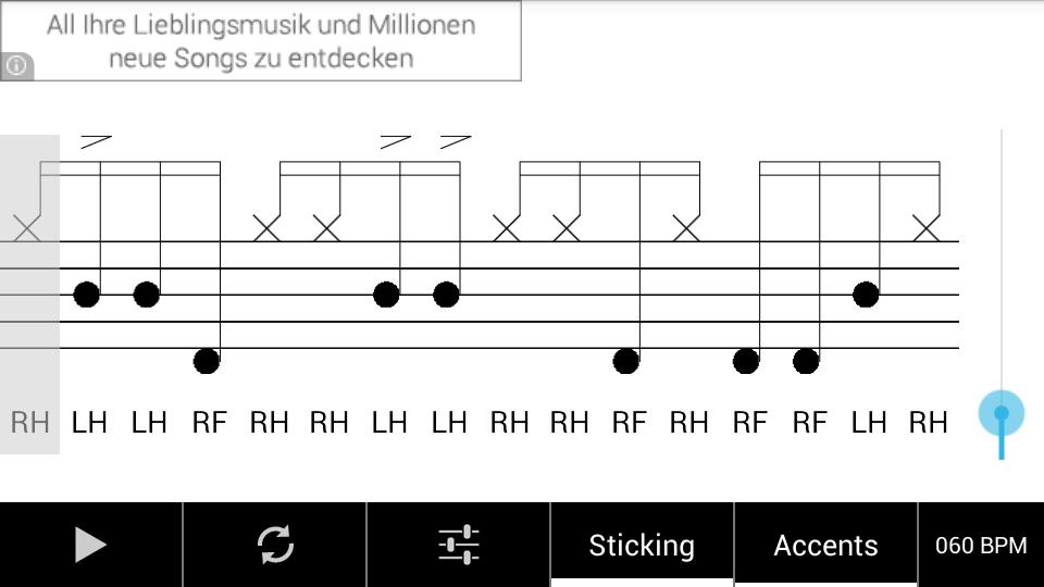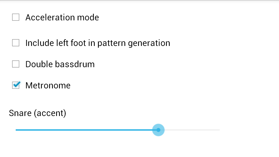 You can adjust bpm and volume of each drum and decide wether the left foot should be used and