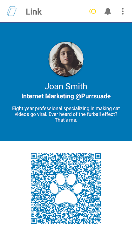 The app utilizes a combination of mesh networking and QR codes to quickly connect with people nearby. Use "Event Linking" to share and retrieve contact information from others Event Linking around you or simply link with whomever you like.