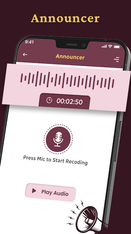 將您的手機與 Mic Announcer 連接,將其轉換為廣播麥克風,盡享樂趣。現場麥克風將使您的手機完全像一個麥克風。麥克風到揚聲器以高音量隱藏您的聲音,就像揚聲器麥克風一樣。