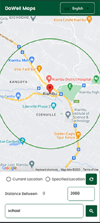 根據給定距離內的選擇文本提供位置信息的應用程序
