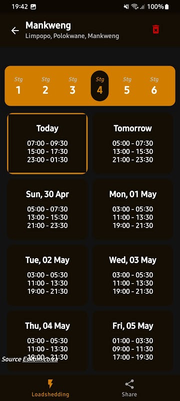該應用程序為用戶提供有關當前減載階段的最新信息,減載是 Eskom 為平衡電力供需而實施的受控停電。用戶還可以查看即將發生的減載事件的時間表,以及在他們所在地區計劃停電時接收通知。