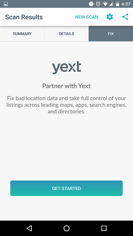 位置掃描是專業營銷,SEO的,和中小企業展現當地的前景和客戶端如何他們的位置會出現在每一個主要的消費屬性的最快方式。只要打開位置掃描,並選擇要掃描的位置。瞬間看到的位置出現在谷歌,Yelp的,Facebook和超過100 +等領先應用,目錄和地圖服務。請參閱分析位置數據錯誤,並鑽入由發行人具體細節的摘要。輕鬆共享通過電子郵件或文本您的潛在客戶和客戶的位置掃描結果,所以他們得到的,他們從你怎麼看待一個永久的報告。位置掃描是Yext為他們的客戶的利益提供給專業的營銷和當地SEO界100%的免費工具。