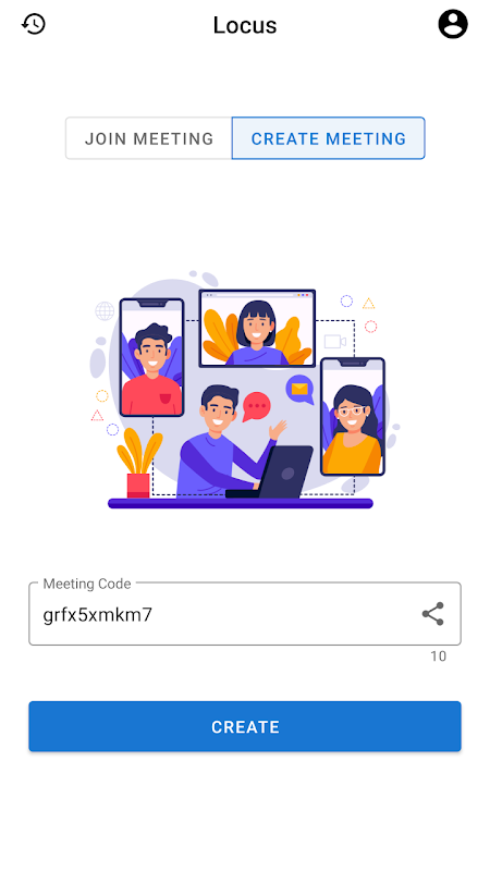 Locus allows up to 70 participants in a single meeting. Create a meeting and invite others to join the meeting by sharing the meeting code right from the app. You can also rejoin previous meetings by browsing the meeting history.