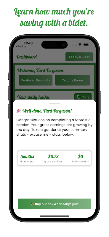 現在,當您登入時,您可以瀏覽我們精選的坐浴盆和衛生紙供應商(他們是世界上最好的),記錄您使用自己的坐浴盆節省了多少錢,甚至可以定期將產品送貨上門。我們也每天為您寫一首個人化的俳句,您可以與世界分享。哦,LogLog 徽章進行了大規模改造。