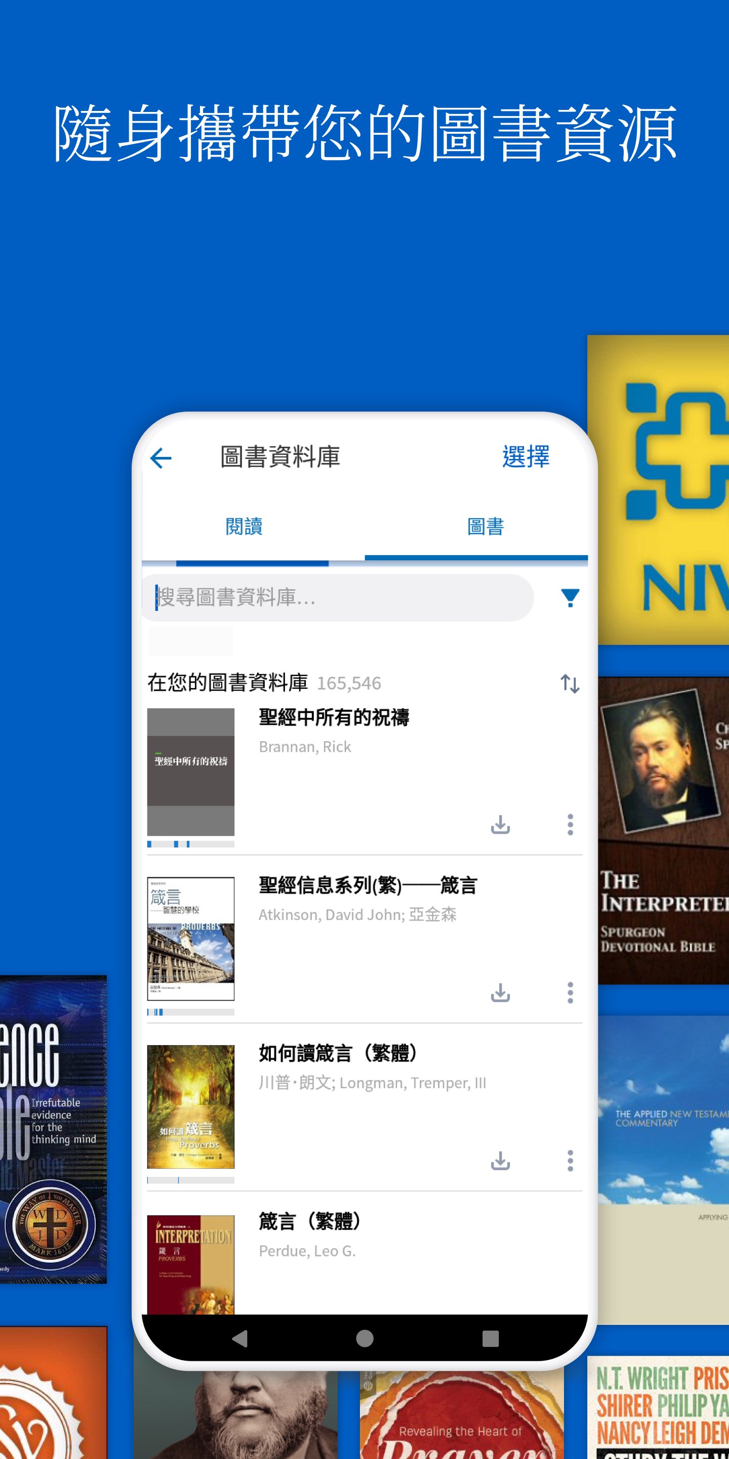 圖書資源 - 包含聖經、聖經字典和研讀本聖經等。或者同步您當前的Logos圖書資源,以便在過程中使用您所有的書籍。