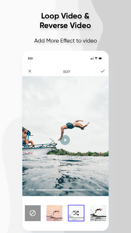 Loop Video And Reverse Video is an application that allows users to edit videos absolutely FREE with Reverse video effect extremely interesting and vivid. If you like creating content, especially creating videos with effects reverse, Reverse video & Loop video is the application you are looking for.