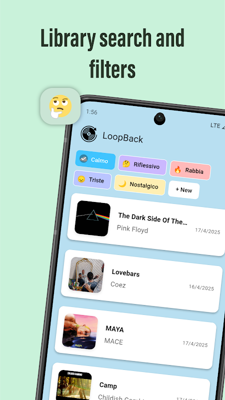 LoopBack 是一款基於心情的音樂日誌和專輯追蹤器,專為想要重新發現那些深深觸動他們的歌曲的音樂愛好者和專輯收藏家而設計。無論您心情愉悅、憂鬱、懷舊或其他任何情緒,LoopBack 都能幫助您找到與您當前心境完美契合的專輯,並發現與您產生共鳴的新音樂。