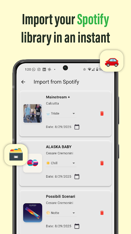 - 將專輯新增至您的個人音樂庫,並為其關聯自訂心情、表情符號和顏色。