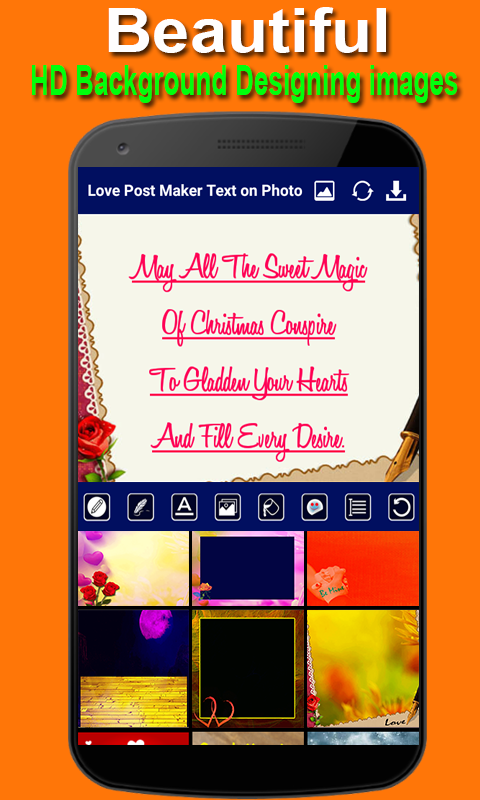 Poetry now added that helps you to make your posts more attractive and beautiful .now write your text on photos in multi languages .text on photo option helps you to design posts for different events mean now you can design your posts by writing your text on beautiful HD background images.Write your text in multi language like English,Urdu,Hindi and Arabic.Multi Language option makes your designing beautiful.