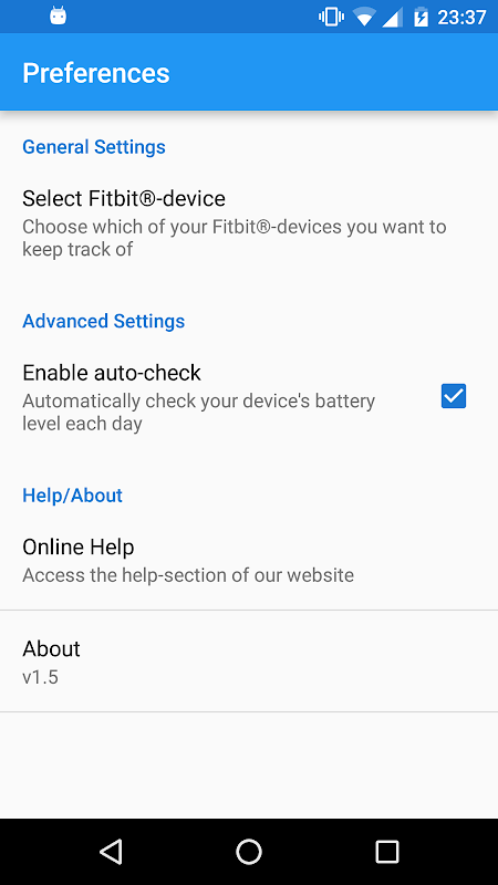 電池電量低通知的Fitbit®提醒您,當您的跟踪器的電池電量低:應用程序定期檢查在後台(每天一次)的跟踪器的電池電量,當電池即將耗盡提出警告在通知欄。