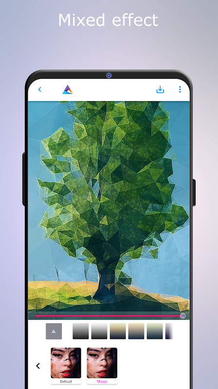 [Low Poly 效果編輯器] Low Poly 提供各種渲染樣式,包括平面著色、3D 效果的線性著色以及更複雜的樣式,例如: * 剪切抽象圖像向量化效果。