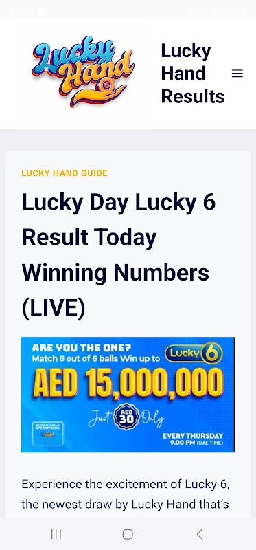 直接從阿聯酋獲取有關幸運之手結果的最新更新和綜合指南!我們的 Lucky Hand 應用程式是您獲得所有 Lucky Hand 抽獎結果的首選資源,包括 Lucky 5 和新的 Lucky 6。