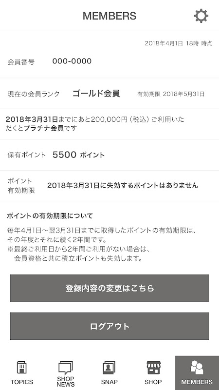 LUCUAメンバーズカードの現在お持ちのポイント数や会員ランクが確認できるほか、ご登録情報の変更手続もアプリ上から行えます。