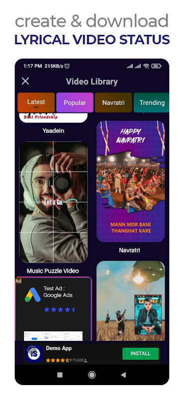Lyrical Video Status Maker is best app to make lyrical video song with your photo and video. You can make 30 sec video status in 1 minute.