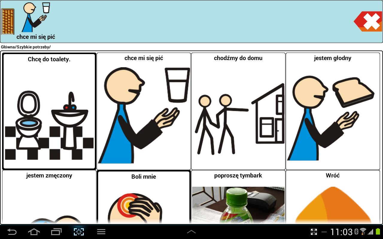 Uwaga. Wersja demo nie pokazuje pełnych możliwości programu. Aplikacja przeznaczona na smartfony i tablety z systemem Android, jest pierwszym w całości polskim programem przeznaczonym dla osób, które nie mogą mówić – osób po wylewach, wypadkach, z afazją, z autyzmem, porażeniem mózgowym, zespołem Downa. AAC. Tablet lub smartfon z ekranem dotykowym, wyposażone w program Mówik pozwalają takim osobom na rozmowę, przekazywanie swoich pragnień, myśli, opinii, potrzeb, pytań. Wersja pełna posiada zintegrowaną syntezę mowy IVONA i ma możliwości nieograniczonego modyfikowania i rozbudowywania tablic. Wersja pełna posiada 6500 symboli.