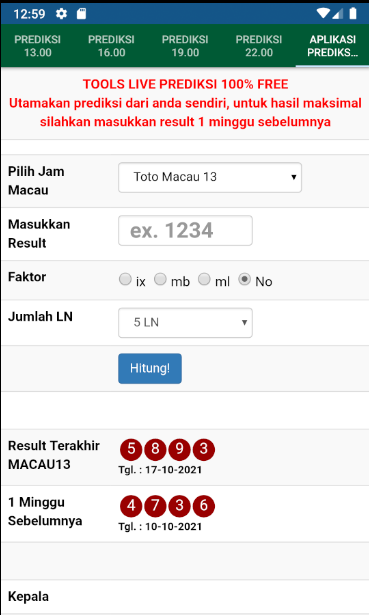 - Aplikasi Prediksi khusus untuk pasaran macau