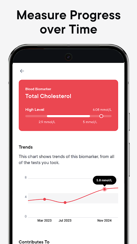 取得全面的健康概覽。導入或在家中進行血液生物標記、DNA 或腸道微生物組檢測。透過簡單易懂的解釋,查看各種檢測結果的趨勢和進展。