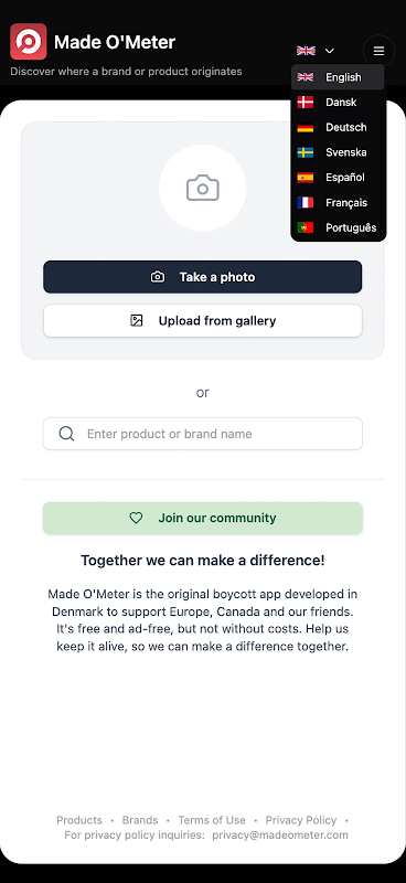 MadeOMeter 可以幫助您立即識別產品的產地以及該品牌的真正所有者——只需拍照即可。沒有條碼,沒有打字。只是事實。