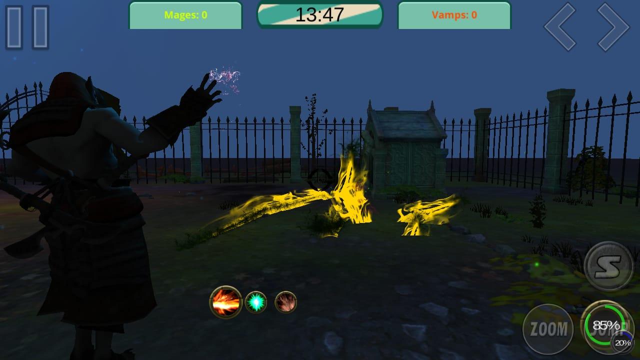 Magic Arena Multiplayer is an intense and awesome 3D fighting game. In this epic title, you are transported to a land of fantasy full of vicious monsters, wizards and vampires! You can take part in brutal combat as either a wizard or a vampire, and you can either fight against a friend in the awesome PVP mode, or against waves of monsters in the single player version.