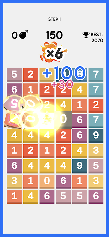 一連串 6 個數字加起來為 10 將製造炸彈。當您沒有連擊時,炸彈可以幫助您清空棋盤,這樣您就可以進入第 2、3、4 步等並擊敗您的高分。