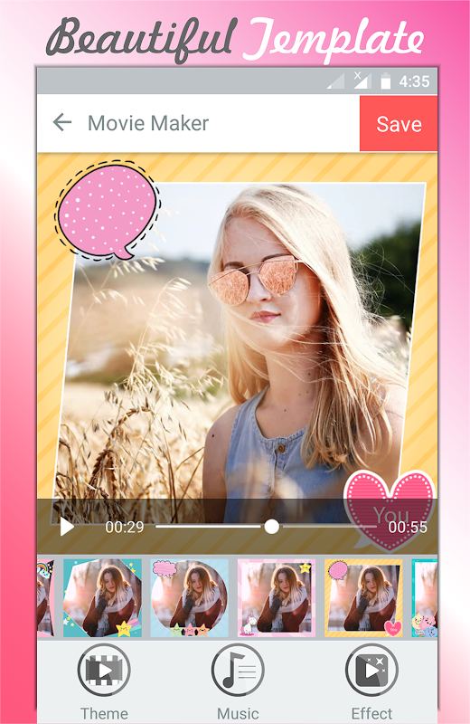 在 Make Video 應用程序中,您的視頻編輯器具有最好的工具:音樂、框架、效果......
