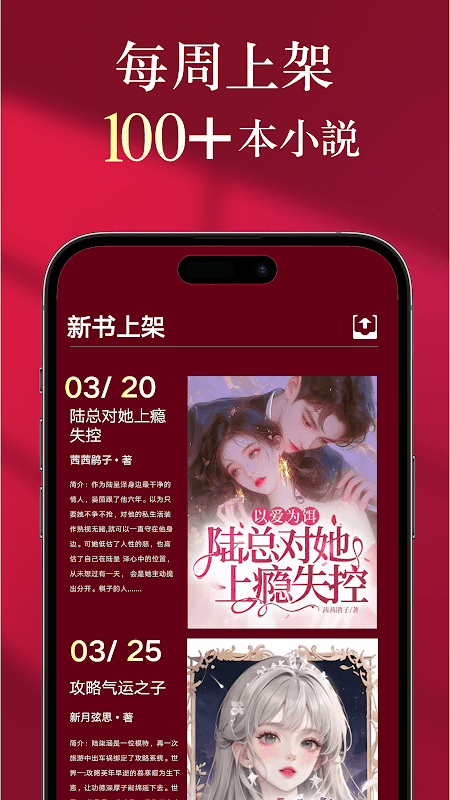 百萬級書庫,分類齊全、題材豐富,每週上新千本爽文;