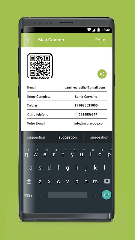 Com apenas um toque, poderá trocar cartões de visitas virtuais ou solicitar rodadas de negócios.