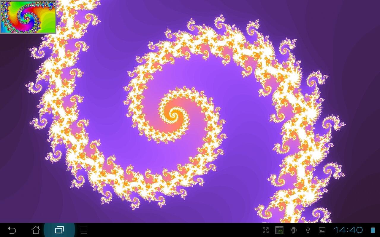 如果你喜歡使用這個版本曼德爾布羅地圖,你可能想嘗試分形圖由天空韋爾奇,一個更新版本的速度提高,一並排側視圖 - https://play.google.com/store/apps/詳細信息?ID = io.bunnies.fractalmaps。