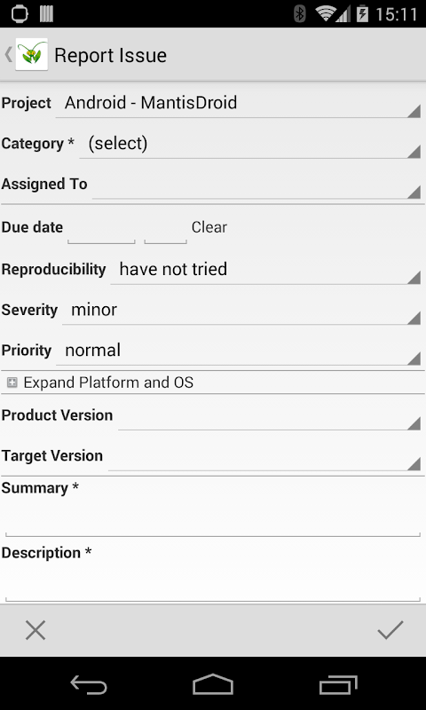 •該應用程序將只與MantisBT版本1.2.9和更高的工作。