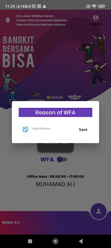 印度尼西亞 Wingstop 員工的考勤應用程序
