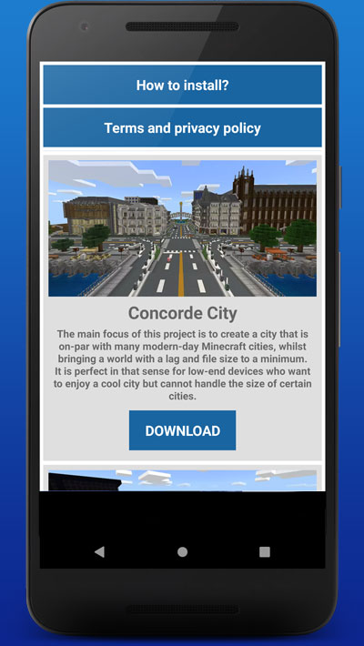 The app Maps City For Minecraft was developed to those who want to enjoy a really big city world in minecraft.