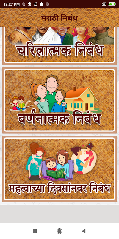 The best app for Marathi nibandh lekhan. This app has covered all the general topics. This app helps you to write best nibandh. Since the days of paper and pencil, essay writing has never really changed a lot. It still entails tons of hard work, in-depth research, logical organization of thoughts, and sophisticated style of writing. As a lot of students continue to hate this writing activity thinking it's just a time-consuming worthless activity.