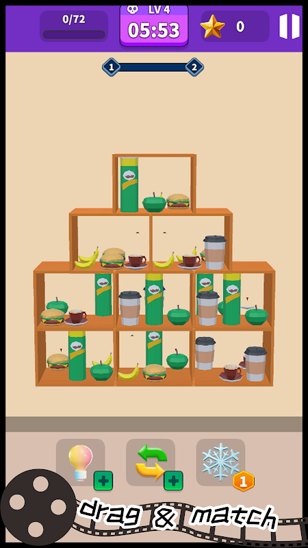 The gameplay is very simple: Drag the goods, put them together, and merge them, done!
