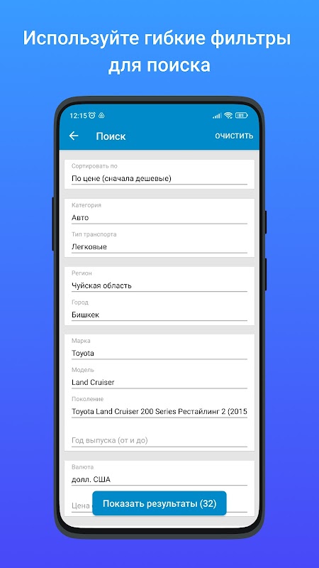 Mashina.kg應用程序具有直觀的界面,並且具有最高效的搜索過濾器,在吉爾吉斯市場中沒有類似物!