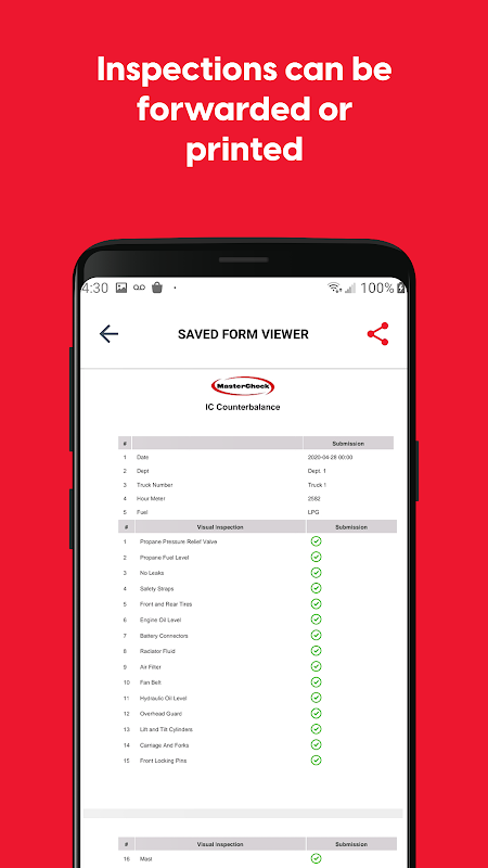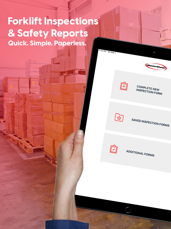 MasterCheck:叉車檢驗應用程序將使您的公司輕鬆實現無紙化的叉車清單和報告。確保遵守職業健康和工作場所安全要求,並按時進行叉車檢查。