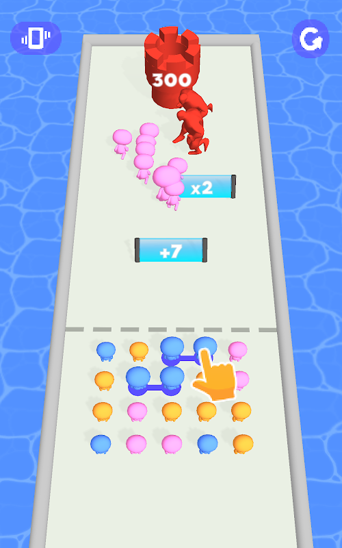 連接來自相同顏色的人並將他們發射到乘數門以增加您的人群並佔領基地!