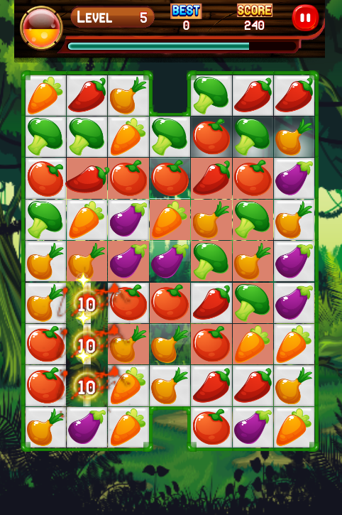 Match and quest treasure in dazzling combinations in this Vegetable journey.