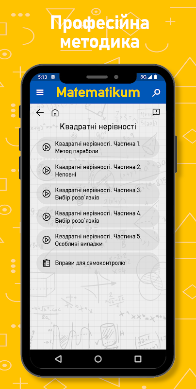 該應用程式包含 300 多個簡短的教育影片和 900 多個代數、幾何和三角學自測題,按照 NMT、ZNO 和 DPA 的所有要求編寫。