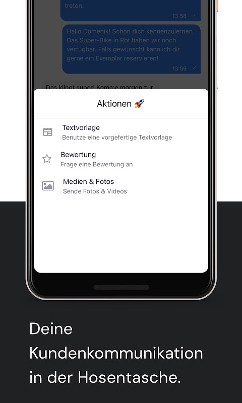 使用 Mateo 應用程序,您可以輕鬆收集評論。一鍵就足以向您的客戶發送單獨的評估請求。