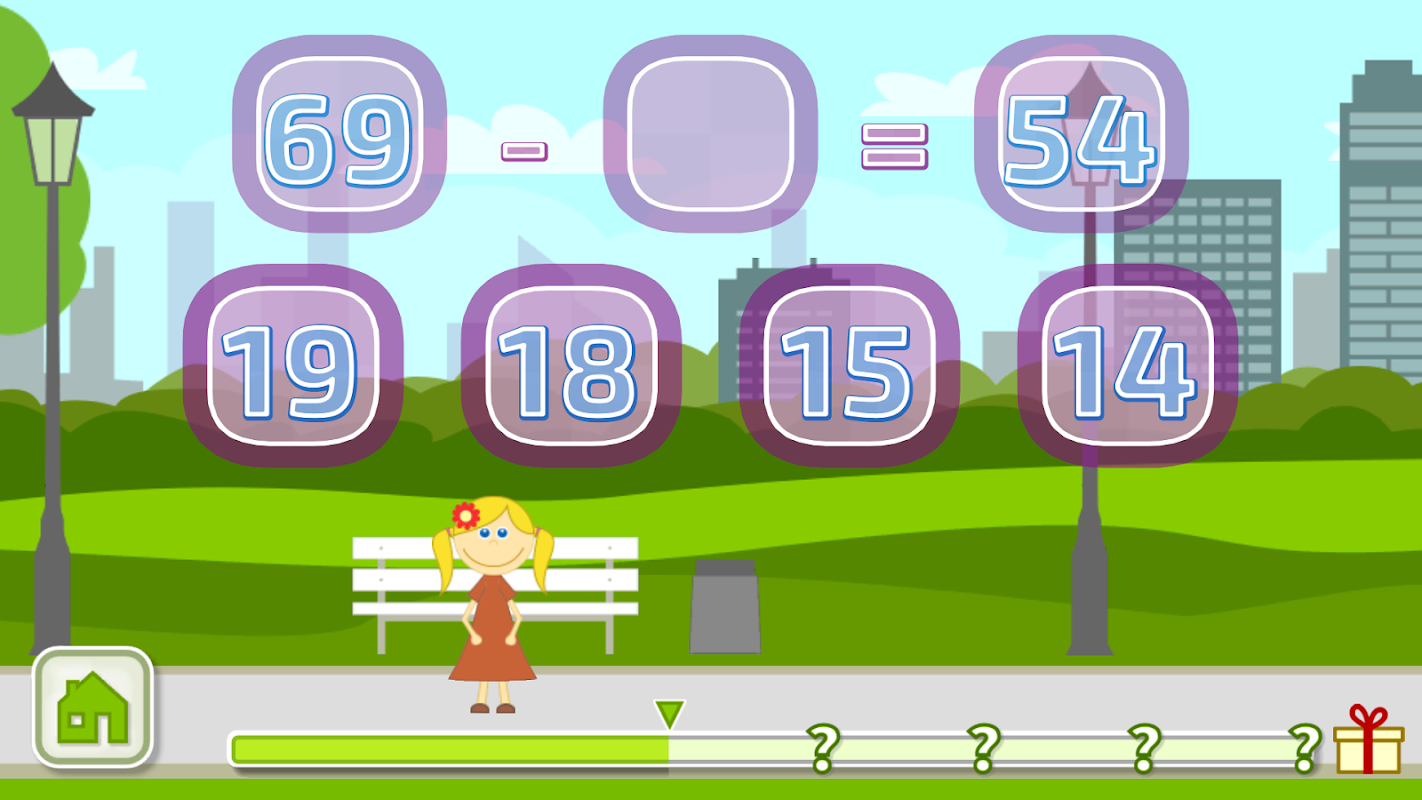 •缺少數字的隨機位置,例如:2 + [] = 10,[]-10 = 25,45 + 29 = []