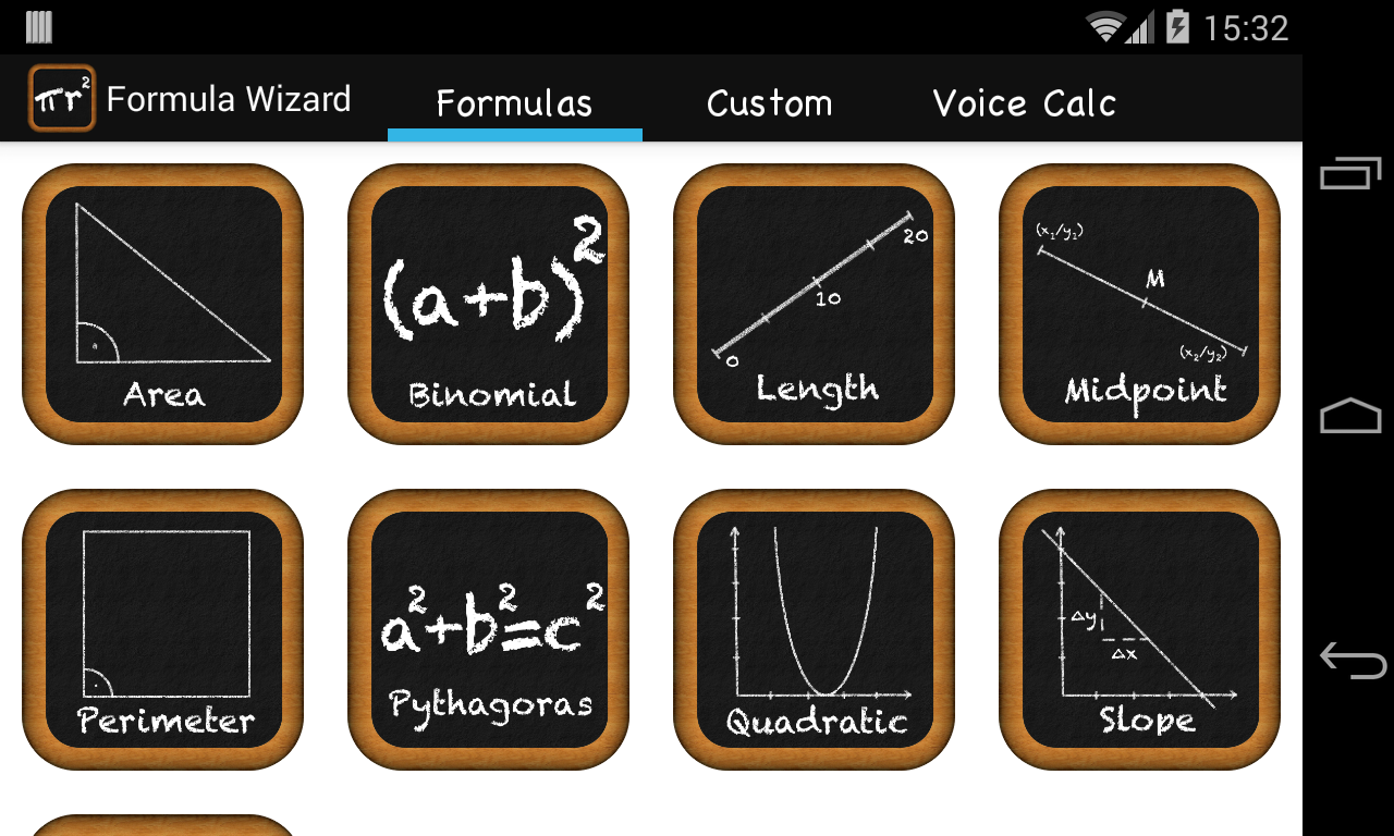 數學公式嚮導 - 數學公式和計算你的Android手機或平板電腦。它是免費的,美麗的和易於使用的!