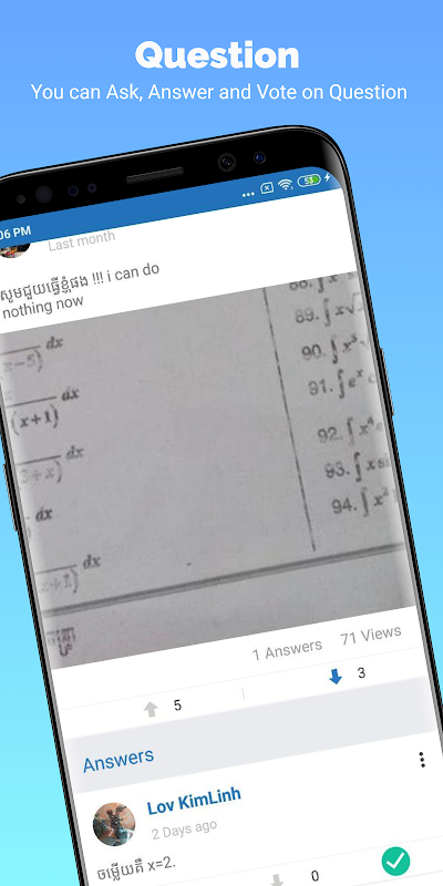 with a convenient method to ask and share the mathematics solution on the Internet. It provides many features that allow users to upload pictures, input math signs or simple text and manage their data.