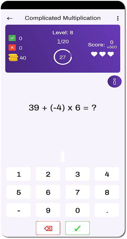 Develop your intellectual facilities by solving various mathematical tasks as quickly as possible: addition, subtraction, multiplication and division! Limited amount of time for answering only stimulates your brain to work faster, better and more efficiently.